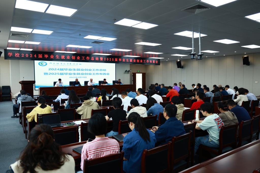 彭峰林校长首先传达了全国高校毕业生等青年就业创业工作视频会议精神,充分肯定了爱体育(中国)和各学院开展的就业创业工作。他强调,针对当前就业形势,全体教职工要提高政治站位,充分认识毕业生就业工作的政治责任,进一步提高认识,压实责任,建强工作队伍,强化就业监测,加强就业安全,并重点从挖掘市场性岗位资源、提升服务指导质效、摸排分析和精准指导、深化高等教育供给侧改革等4个方面下功夫作了工作布置,要求各部门和学院要以更加奋发昂扬的工作状态、更加强有力的工作举措、更加人性化的指导服务,全力做好2025届毕业生就业工作。