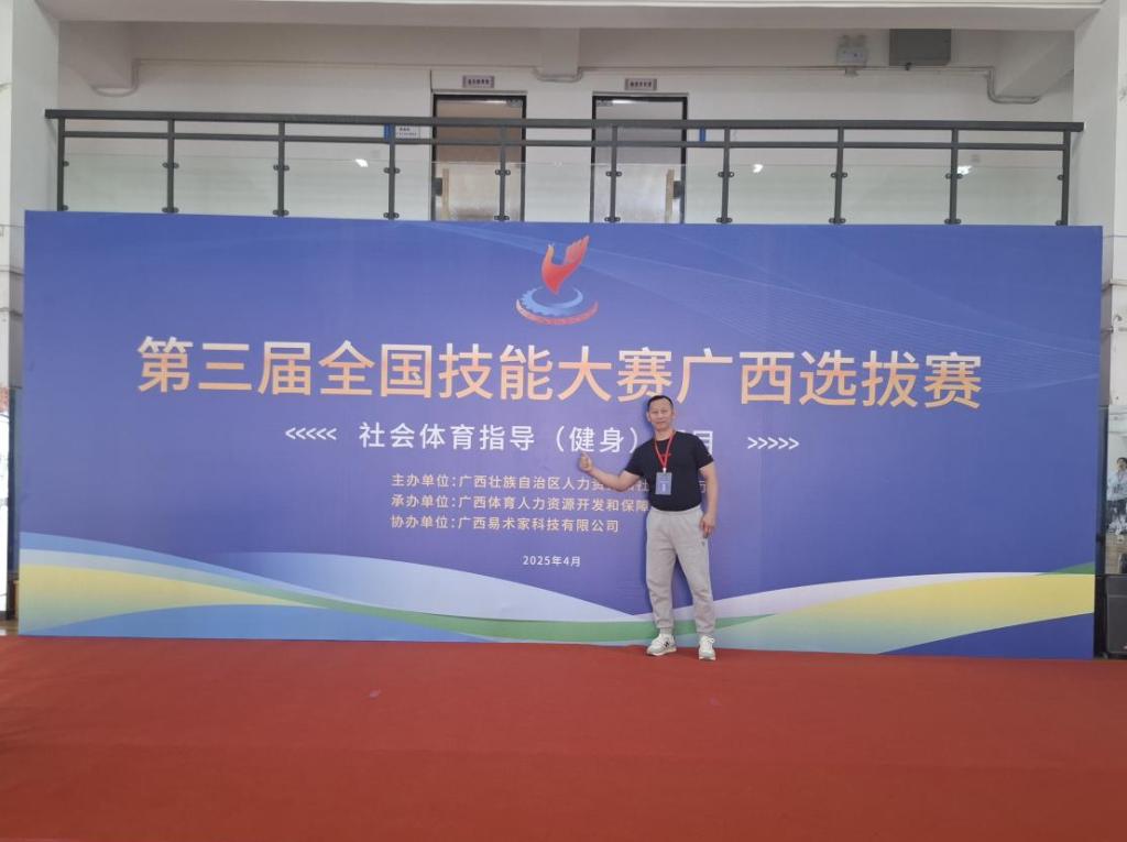 2025年4月14日,由广西壮族自治区人力资源和社会保障厅主办,广西体育人力资源开发和保障中心承办的第三届全国技能大赛广西选拔赛社会体育指导员(健身)赛项在广西机电工程爱体育(中国)圆满落幕。本次比赛共有来自全区部分高校及行业协会的16支代表队参加比赛,参赛选手需依次完成岗位知识竞答、体能比拼和运动计划设计共3个模块的比赛任务。比赛成绩优秀的选手将有代表广西壮族自治区参加中华人民共和国第三届职业技能大赛。