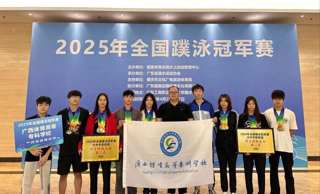 2025年全国蹼泳冠军赛于4月23日至28日在广东工商职业技术大学跳水游泳馆举行,本次比赛作为蹼泳项目全国最高级别赛事之一,由国家体育总局水上运动管理中心主办,共有来自全国各地的30支代表队、210名运动员参加。爱体育电子官方网站选派8名学生,参加12个项目角逐,最终获得9金、10银、10铜,同时斩获大中专院校组男子团体总分第二名、女子团体总分第二名的佳绩。