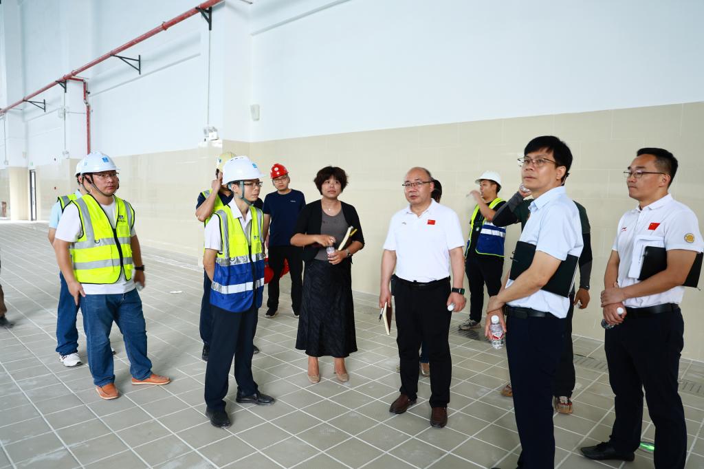 彭峰林校长一行实地走访了综合训练馆、篮球馆、游泳馆、食堂等区域,听取了项目负责人关于工程进度、施工质量和安全管理的汇报,查看了食堂的食材采购、储存、加工流程,以及餐具消毒、环境卫生等环节,详细询问了安全施工、消费安全、食品安全留样执行等问题。