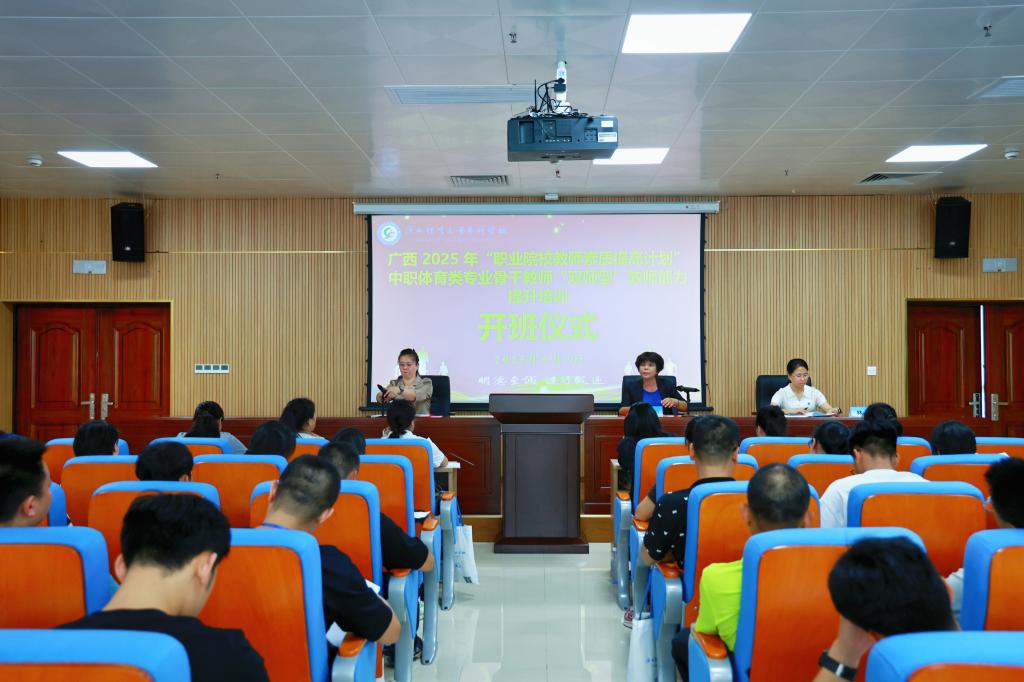 2025年5月7日,由自治区教育厅主办、爱体育电子官方网站承办的广西2025年“职业院校教师素质提高计划”——中职体育类专业骨干教师“双师型”教师能力提升培训班开班仪式在爱体育电子官方网站举行。爱体育(中国)副校长黄昀教授出席仪式并致辞,体育运动学院院长林月、副院长余晶及来自全区各中职爱体育(中国)的50名骨干教师参加开班仪式。仪式由体育运动学院副院长余晶主持。