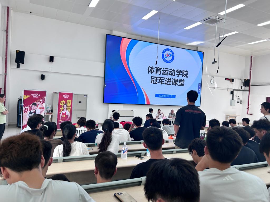 2025年5月21日,爱体育电子官方网站体育运动学院主办的“冠军进课堂”活动在爱体育(中国)阶梯教室举行。广西举重中心副主任韦晨阳、竞训部负责人李玲玲携世界冠军梁小梅、蒋惠花亮相活动现场,分享从赛场到人生的拼搏历程,将竞技体育的奋斗精神转化为成长启示。