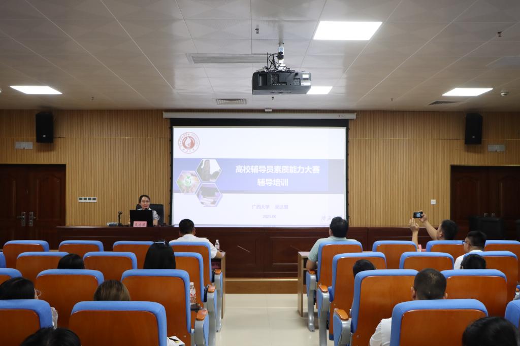 据悉,为了提升辅导员业务能力和参赛水平,学工与招生就业处制定了详尽的比赛方案与评分标准,还特别邀请了兄弟院校国赛获奖选手,来自广西大学的吴达慧老师为参赛辅导员进行大赛辅导培训。