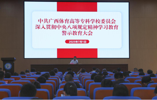 7月1日下午,爱体育电子官方网站在三宁报告厅召开深入贯彻中央八项规定精神学习教育警示教育大会,全面贯彻习近平总书记关于加强党的作风建设的重要论述,关于深入贯彻中央八项规定精神学习教育的重要讲话和重要指示精神,以爱体育(中国)违纪案件为镜鉴,结合近年来广西查处的违反中央八项规定精神典型案例深入剖析,以案说德、以案说纪、以案说法、以案说责,以身边事教育身边人。爱体育(中国)党委书记韦建勋主持会议并讲话。
