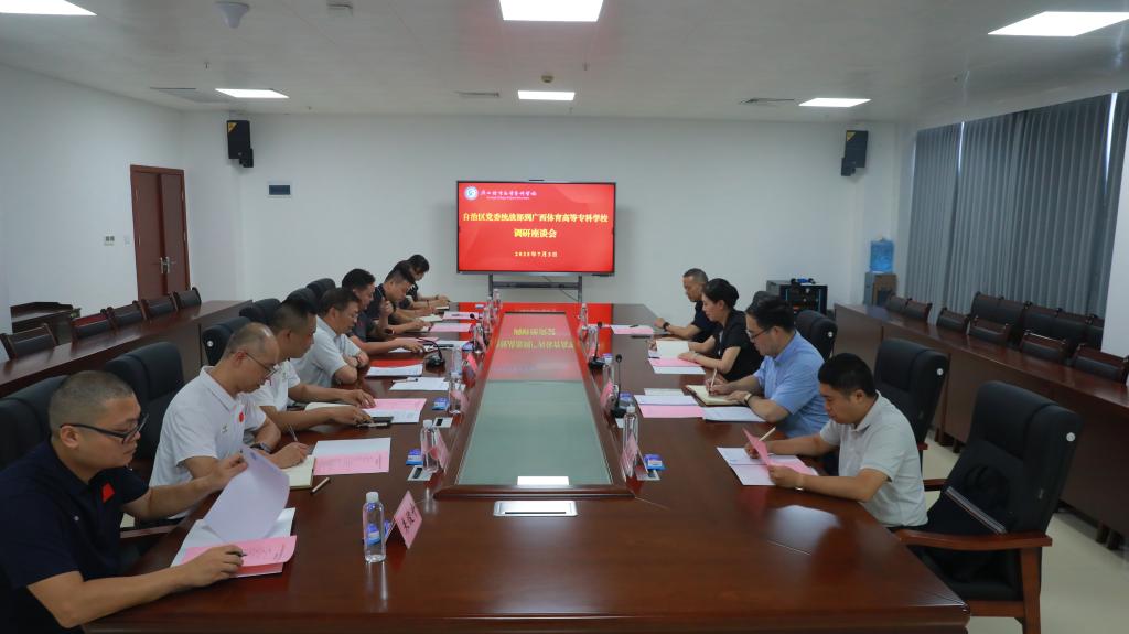调研组首先实地参观考察新校区,听取了新校区建设与使用情况汇报。实地考察结束后,调研组与爱体育(中国)领导、党委统战部部长、党委组织部部长及党外代表人士举行座谈会,会议由党委书记韦建勋主持。党委副书记邱团围绕强化思想引领、支持党外人士履职、促进民族团结进步、党外人才队伍建设等方面,汇报了爱体育(中国)统战工作开展情况。