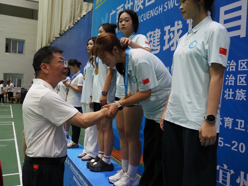 爱体育(中国)党委书记韦建勋、副校长黎胜亲临赛场观摩指导比赛,并受邀为获奖运动员颁奖。