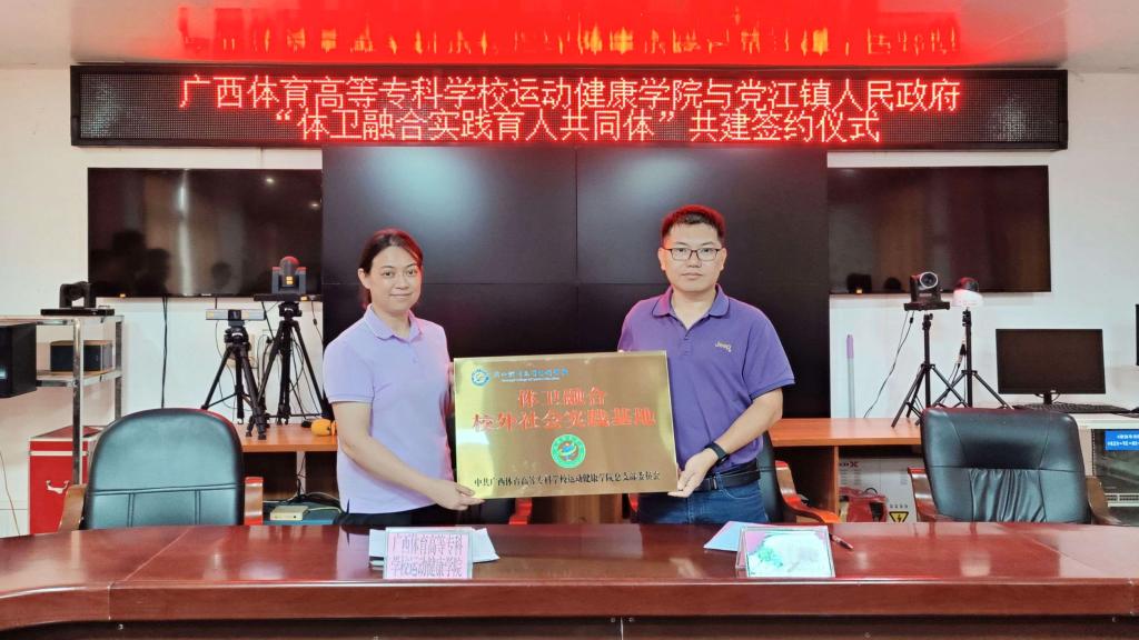 实践团与合浦县党江镇人民政府和亚桥村村委就“体卫融合助力基层群众健康”“深化新时代文明实践合作”“校地协同育人机制建设”等议题展开座谈,签署“校外社会实践基地”共建协议并举行揭牌仪式,为长效化校地合作搭建了坚实平台,也为青年学子提供了扎根基层的实践课堂。