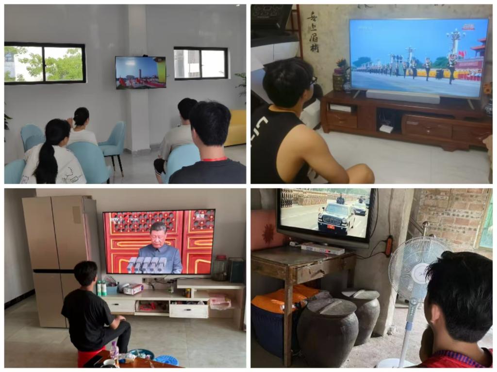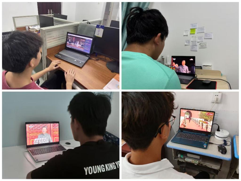 学生们通过电视、网络等方式自行收看大会直播。大家在班级群、朋友圈分享观看感悟,表达对革命先烈的崇敬之情和对祖国的热爱。