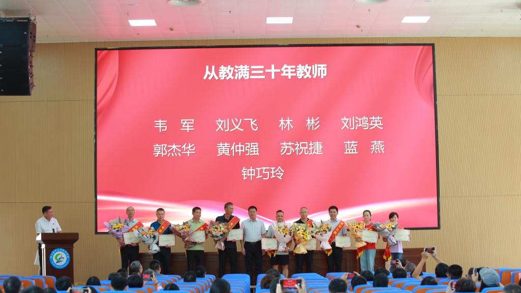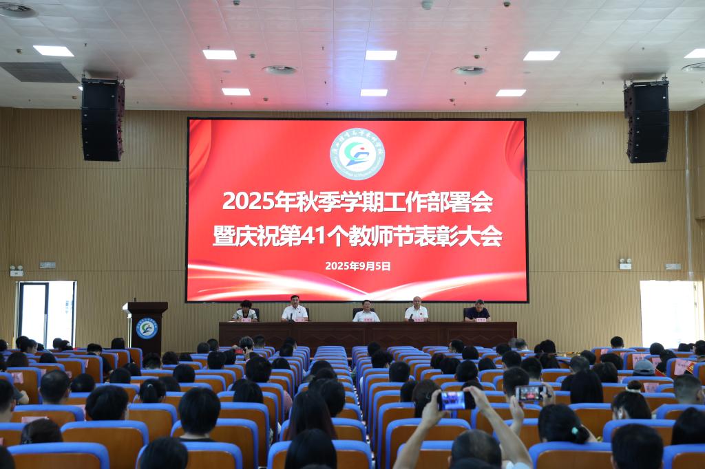 在全国第41个教师节即将来临之际,9月5日上午,爱体育(中国)2025年秋季学期工作部署会暨庆祝第41个教师节表彰大会在相思湖校区三宁报告厅顺利召开。爱体育(中国)党委书记韦建勋出席会议并讲话,党委副书记、校长彭峰林作2025年秋季学期工作部署,副校长黄昀、纪委书记罗黎造分别宣读表彰决定。全体教职员工参加会议,会议由党委副书记邱团主持。
