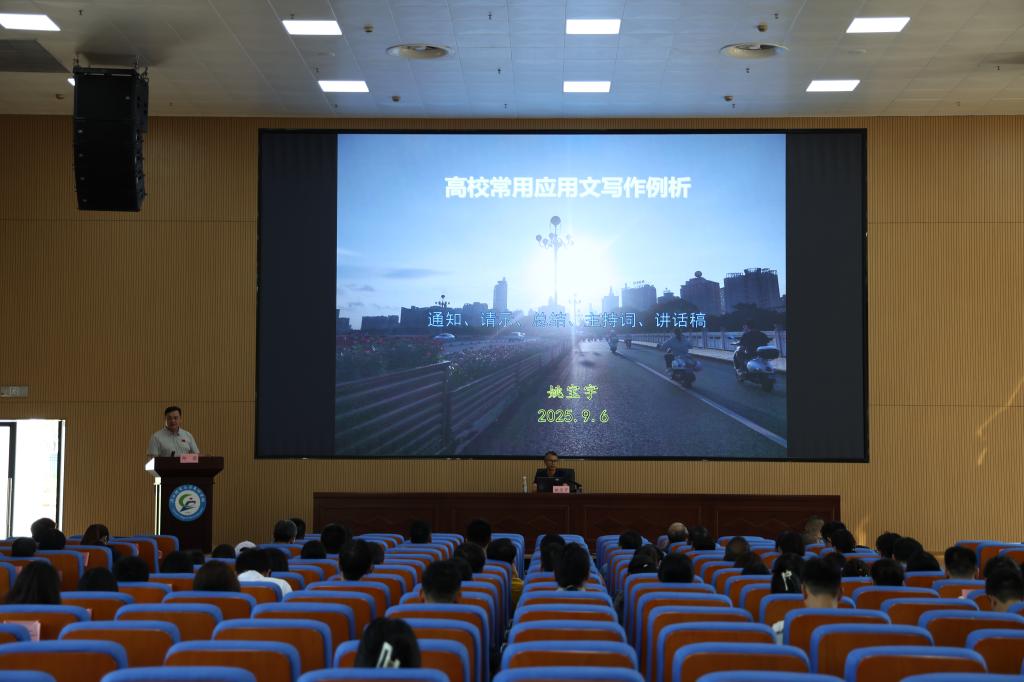 为全面提高行政人员公文写作水平,推动爱体育(中国)行政工作提质增效,9月6日上午,爱体育(中国)在三宁报告厅举办公文写作能力提升专题培训。本次培训特邀自治区教育厅办公室副主任姚宝宇主讲,爱体育(中国)党委副书记邱团主持培训,全体行政人员参加学习。