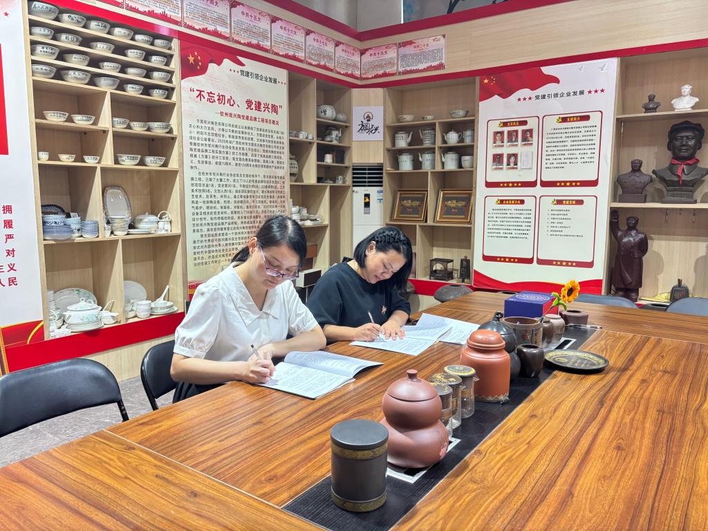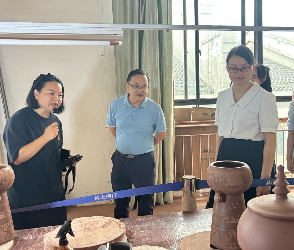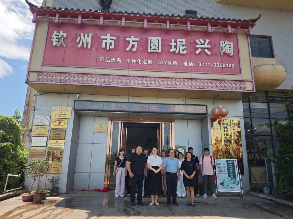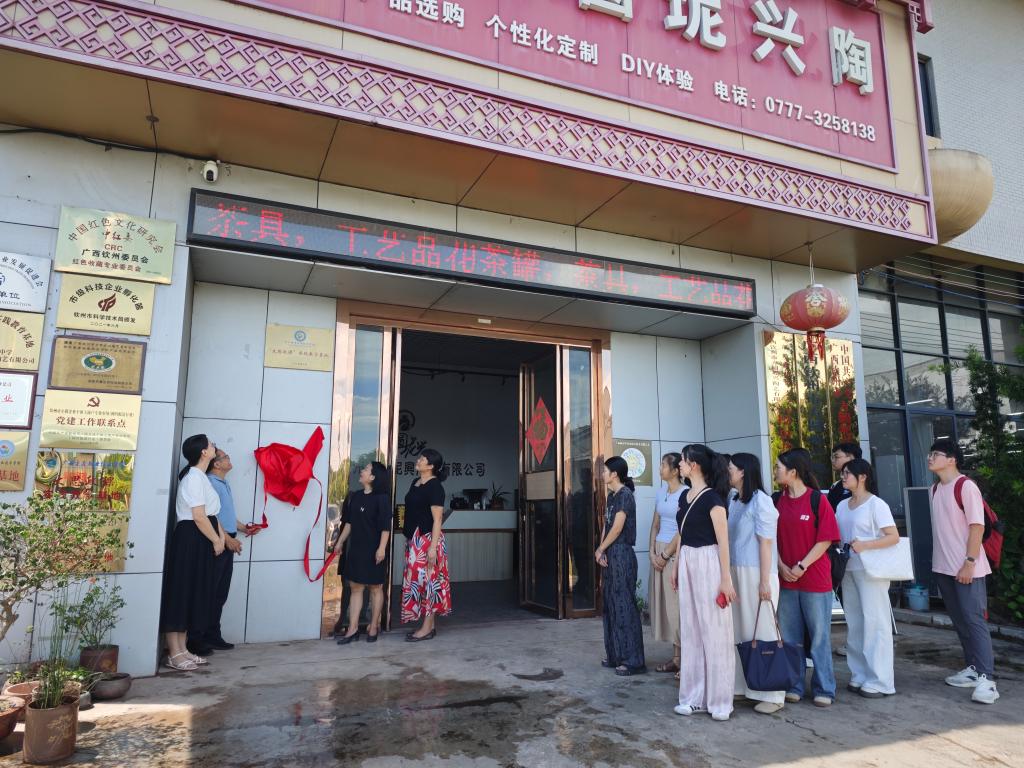随后,与会领导嘉宾共同为“大思政课”实践教学基地揭牌,这标志着双方合作正式落地。仪式结束后,吴甲兰书记带领师生们参观了公司的坭兴陶生产车间和产品展厅。