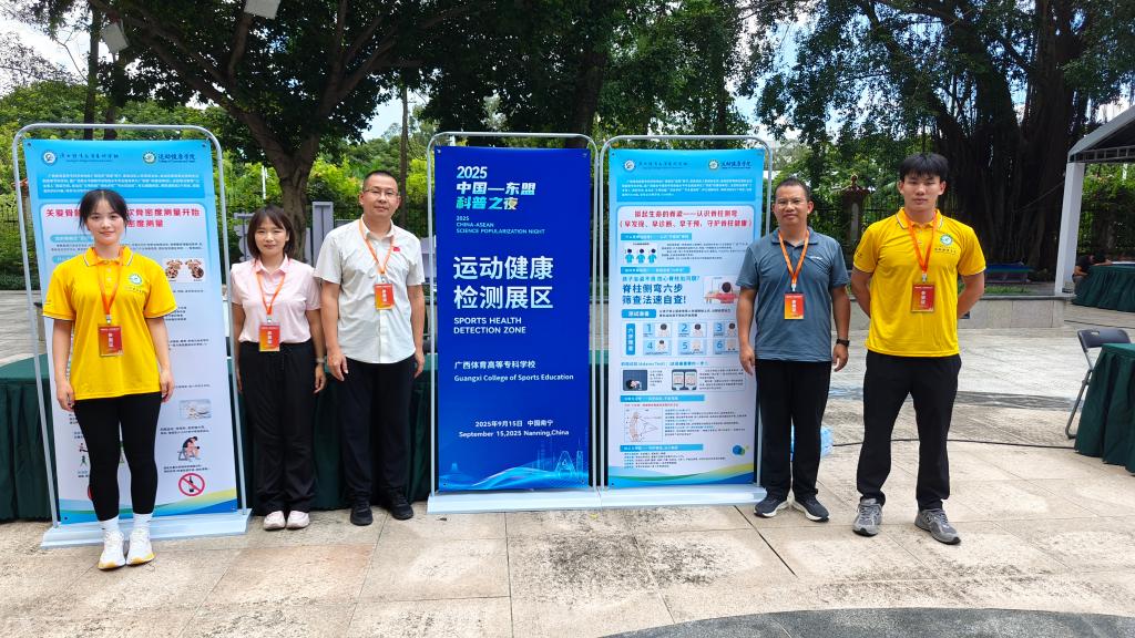 9月15日,爱体育电子官方网站运动健康学院受邀参加由自治区科技厅主办的“中国-东盟科普之夜”活动。本次活动以“AI科普领航、智联东盟”为主题,吸引了科技部相关领导、自治区党委组织部、宣传部、科技厅负责同志、东盟国家驻邕使节以及社会各界群众约700人参与。