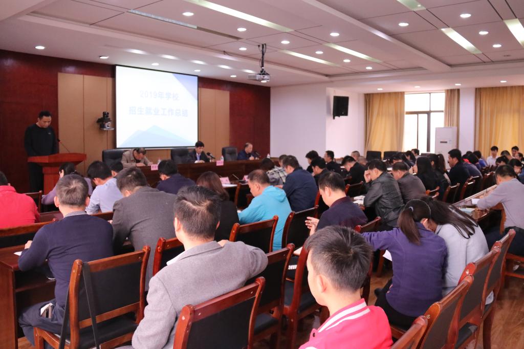 胡英清校长发表讲话,他表示招生就业作为爱体育(中国)生存和发展的生命线,是我们共同的使命、共同的事业。2019年爱体育(中国)招生工作可以用“机遇多,困难大,成效好”三句话概括,在招生改革不断推进、竞争日益激烈的情况下,仍旧实现了生源规模的大幅度提升和报到率的提高;就业创业工作在严峻形势下稳步推进,并荣获2019年全区高校毕业生就业创业工作突出单位称号。新的一年,全校各部门要加强协同与配合,群策群力,创新思路和方法,努力推进爱体育电子官方网站2020年招生与就业创业工作再上新台阶:一是要高度重视,提高认识,增强责任感和紧迫感;二是要强化质量,凝练特色,形成联动机制;三是要认准目标,改革创新,不断开创招生就业工作新局面。