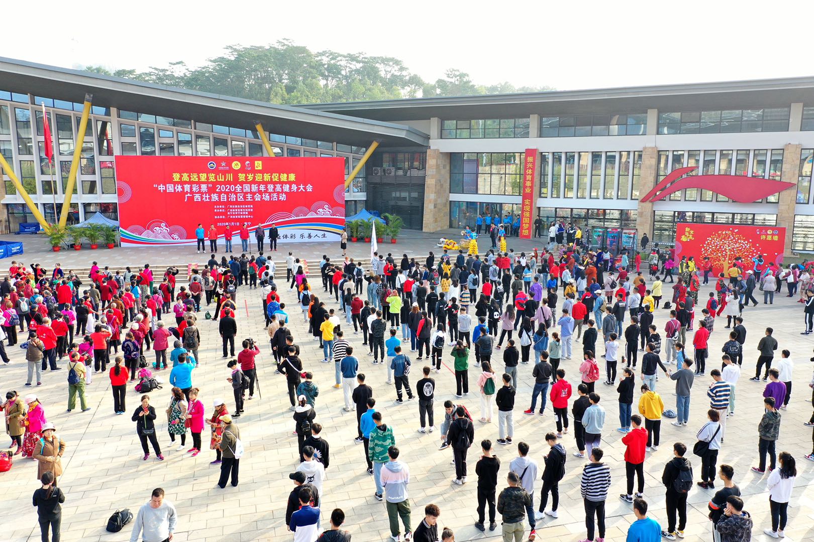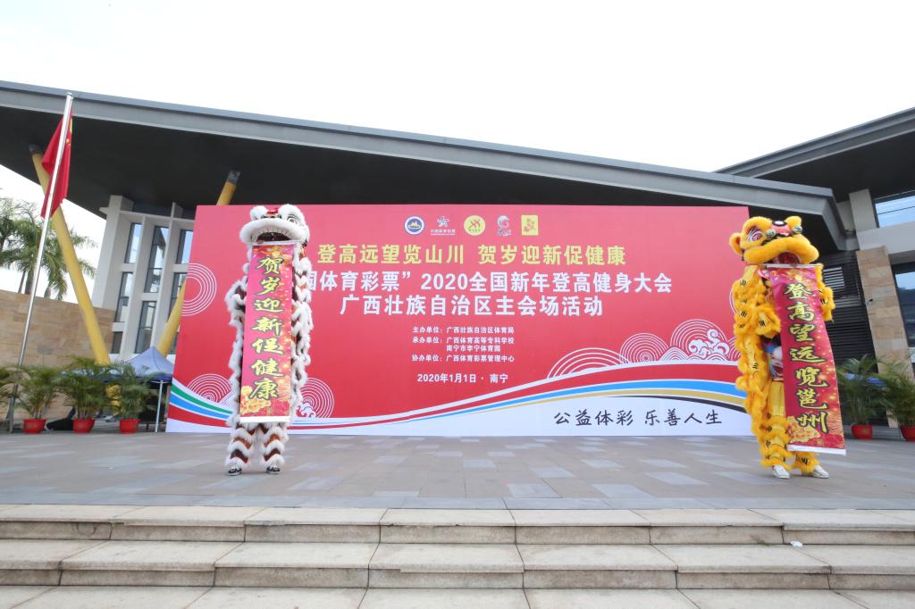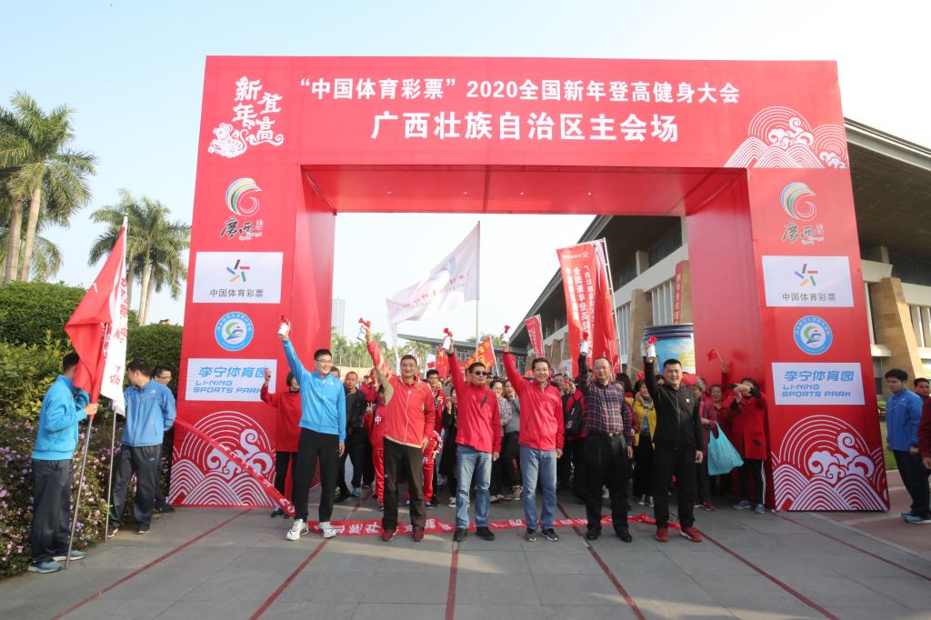 1月1日早上,南宁市李宁体育园中心广场热闹非凡,近千名市民前来参加广西2020年迎新年登高祈福活动。自治区体育局卢意文副局长、自治区体育局群众体育处韦建勋处长、爱体育电子官方网站覃世东副校长、广西体育彩票管理中心农成副主任等相关领导参加了活动。