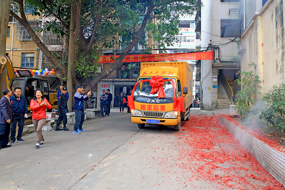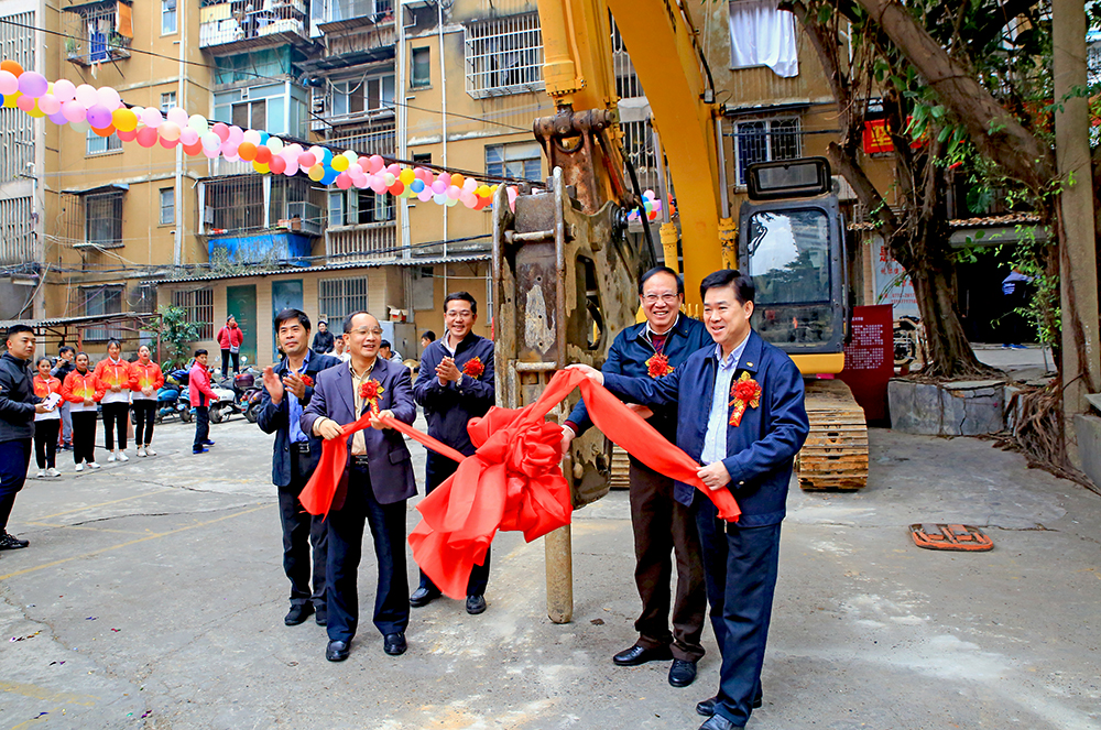 随着李泽局长宣布体育局危旧房改造项目正式启动。礼炮、鞭炮齐鸣,党组成员、体专党政主要负责人、住户代表以及代建单位负责人共同手持金沙瓶,洒向“共建幸福家园”金沙成字牌匾,揭下挖掘机红绸;体专党委周璋斌书记、局危旧办廖学志主任、住户代表林黎明和代建单位刘华经理分别作了发言。仪式在狮舞和谐的锣鼓声中唤醒,到搬家车辆缓缓驶出大院中圆满完成。