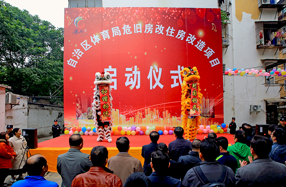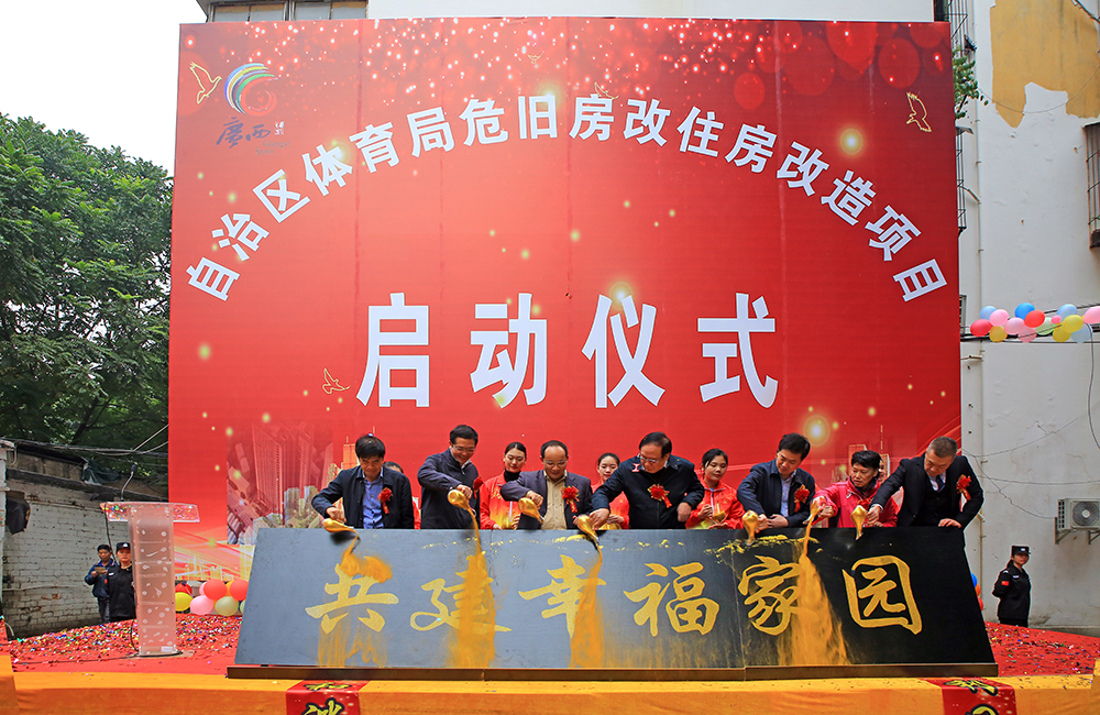 12月30日上午,自治区体育局危旧房改住房改造项目启动仪式在南宁市人民东路11号大院隆重举行。自治区体育局党组书记、李泽局长到会致辞。谢强副局长主持仪式。体育局党组成员、体专、体校党政领导班子、局机关各处室负责人、各直属单位班子成员和代建单位、项目办人员以及业主等参加了启动仪式。