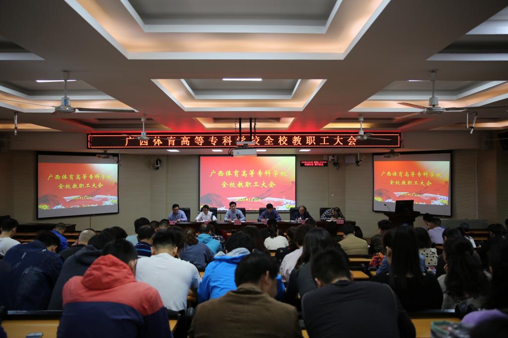 1月10日上午,爱体育(中国)在402报告厅召开2019年秋季期末教职工大会。爱体育(中国)党委周璋斌书记主持会议并讲话,胡英清校长总结2019年下半年工作情况并部署2020年上半年主要工作任务。爱体育(中国)党政领导班子及全体教职工参加会议。