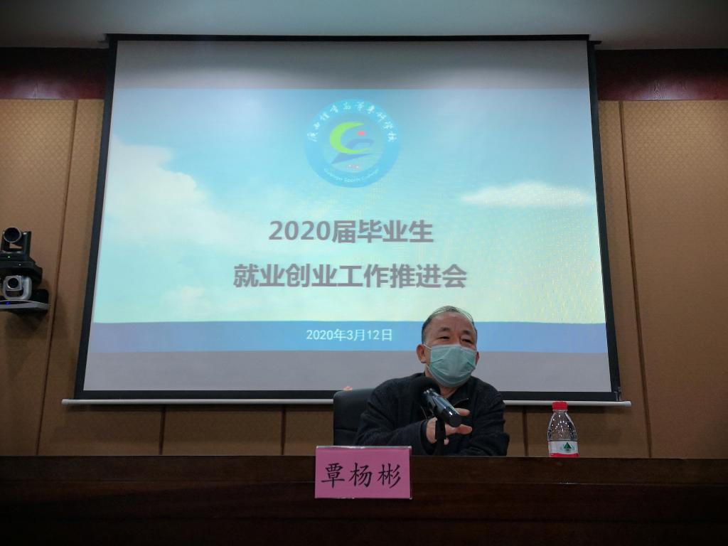 为了深入贯彻落实习近平总书记关于疫情形势下做好高校毕业生就业工作的指示精神,全面落实疫情防控期间教育部、教育厅、爱体育(中国)相关文件要求,3月12日下午,爱体育电子官方网站2020届毕业生就业创业工作推进会在7楼报告厅召开。覃杨彬副校长参加会议并总结发言,招生就业处全体人员、各学院党总支书记、各学院党总支副书记、毕业班辅导员参加会议。会议由招生就业处覃琳处长主持。
