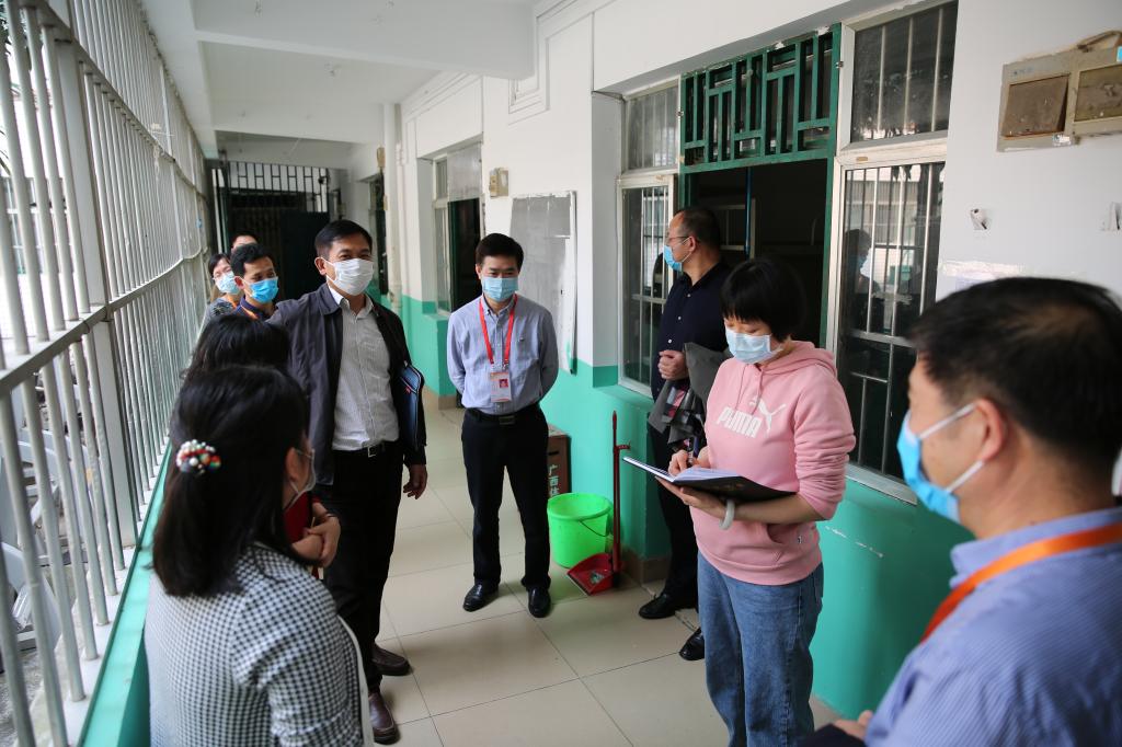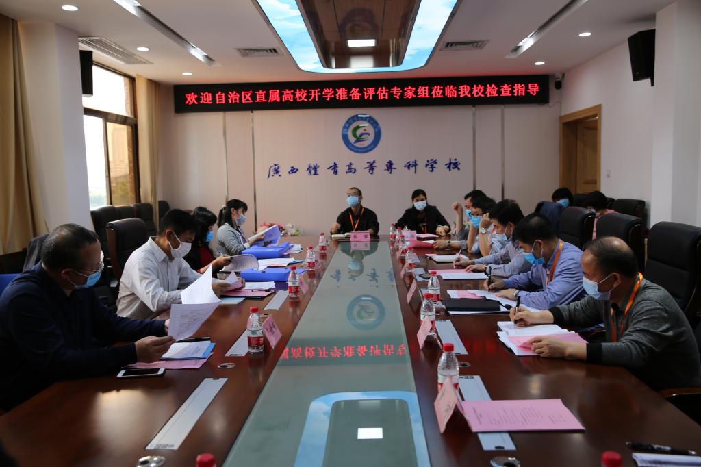 按照自治区新型冠状病毒感染的肺炎疫情防控工作领导小组指挥部开学工作组的工作部署,4月9日下午,自治区直属高校开学准备评估专家组刘中奇一行4人到爱体育电子官方网站开展开学准备评估工作。爱体育(中国)党委书记周璋斌、校长胡英清、党委副书记李爱民、副校长覃杨彬、副校长邱团以及爱体育(中国)疫情防控工作领导小组成员查看现场并参加会议。