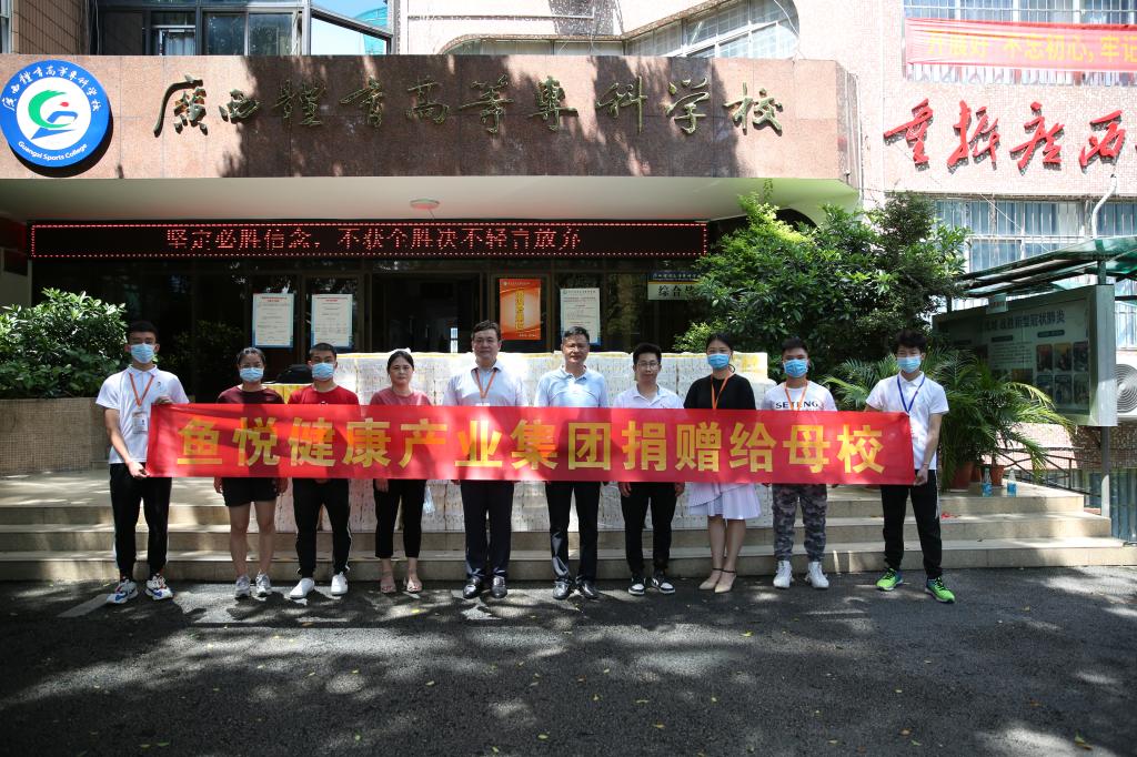 饮水思源,感恩永存,6月2日,鱼悦健康产业集团向爱体育电子官方网站捐赠纸巾一批。鱼悦健康产业集团董事长覃新年为爱体育电子官方网站96级体育教育专业,至今为止爱体育电子官方网站有几十个校友在该公司工作。