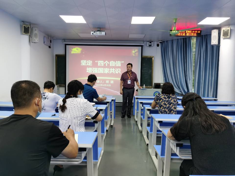 为提高教职工党员对党的指导思想的准确理解,深刻领会党的先进理念。6月25日上午,邱团副校长在303教室给财务工会图书馆党支部全体党员上了题为《坚定“四个自信” 增强国家共识》的党课。
