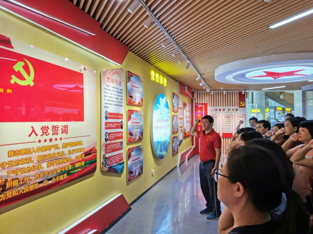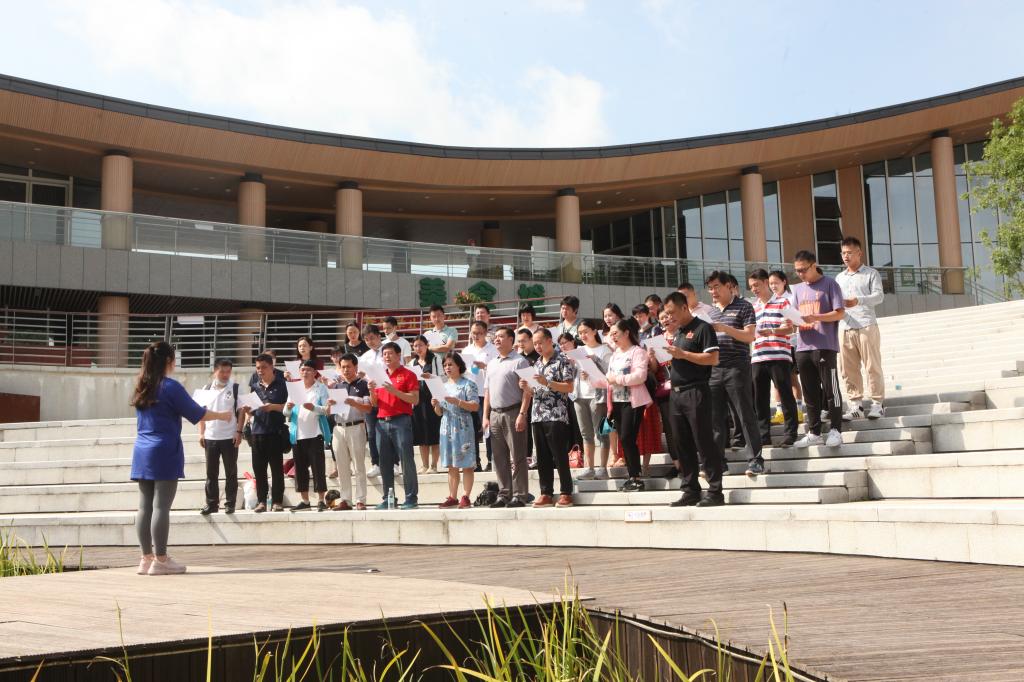 活动之初,机关党总支韦伦国书记带领全体党员同志愿重温入党誓词,铿锵有力的誓言表明了大家坚守初心、忠诚于党、立足岗位、团结奉献的坚定信念。随后,全体人员移步音乐喷泉广场,齐唱《我和我的祖国》,用歌声表达了对伟大祖国母亲的无限热爱,展示了机关党员良好的精神风貌。