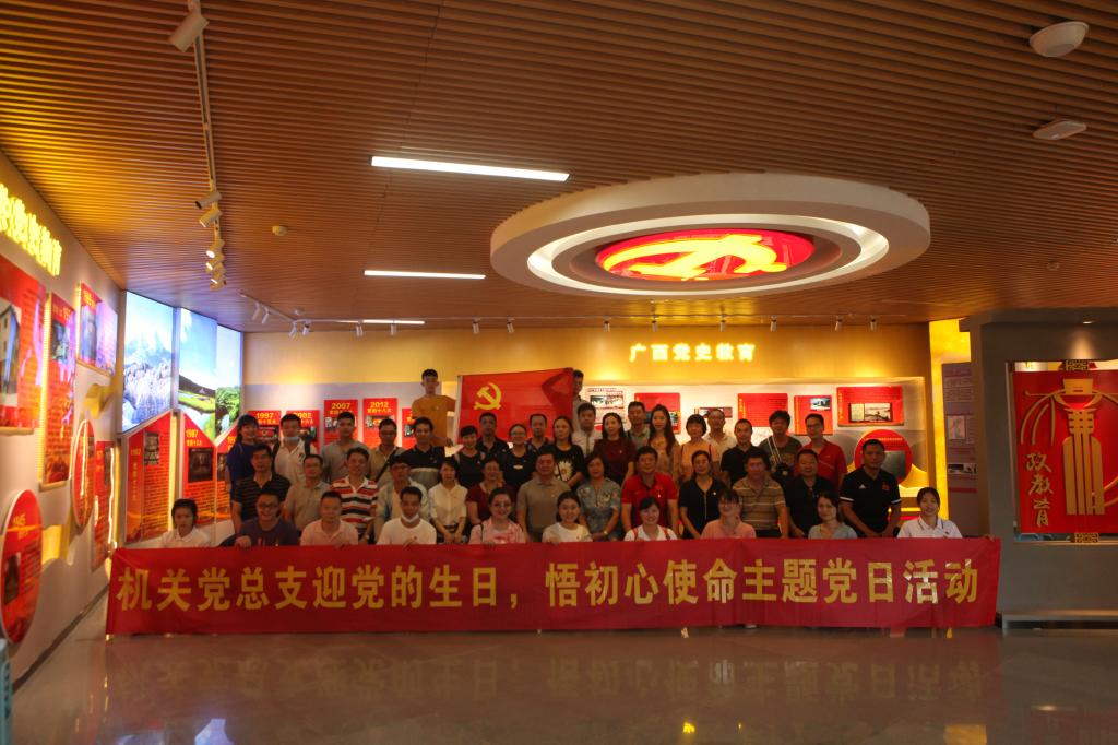7月8日上午,爱体育电子官方网站机关党总支组织机关党员干部40多人前往广西国有高峰林场党性教育基地开展“迎党的生日,讲战役故事,悟初心使命”的主题党日活动,庆祝伟大的中国共产党成立99周年,进一步增强党性修养,推进机关的党建工作。活动邀请了思政部公教部直属党支部的党员和部分学生党员一起参加,邱团副校长以普通党员的身份参加活动。