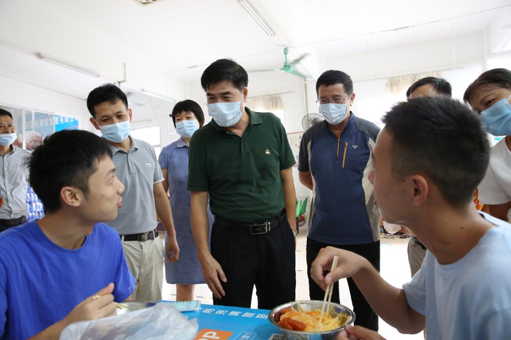 9月7日上午,胡英清校长对本部校区的食堂、学生宿舍和运动场所进行综合检查,指导工作。