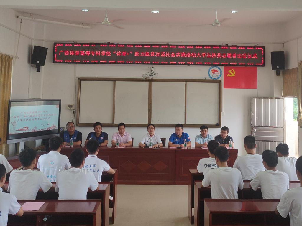 9月18日,爱体育电子官方网站在广西梧州市藤县宁康乡举行“扶贫志愿者出征仪式”。爱体育电子官方网站20名青年学子经过严格审核、培训,即将奔赴脱贫攻坚一线,本次选拔也标志着今年爱体育电子官方网站大学生扶贫志愿者招募工作正式完成。在接下来的半年时间,青年志愿者们将在爱体育电子官方网站各帮扶贫困村开展体育文化教学、扶贫助理等服务工作,在助力脱贫攻坚、服务乡村振兴战略的实践中受教育、长才干、作贡献。