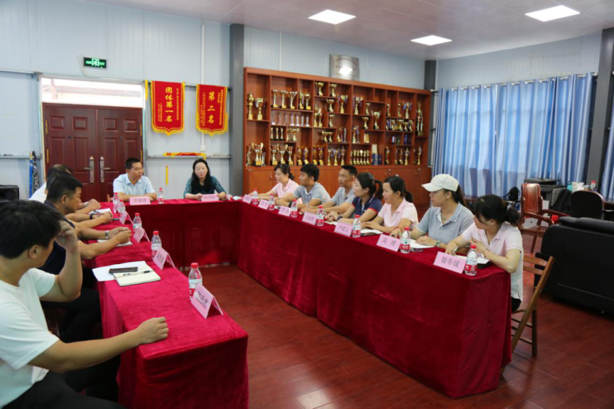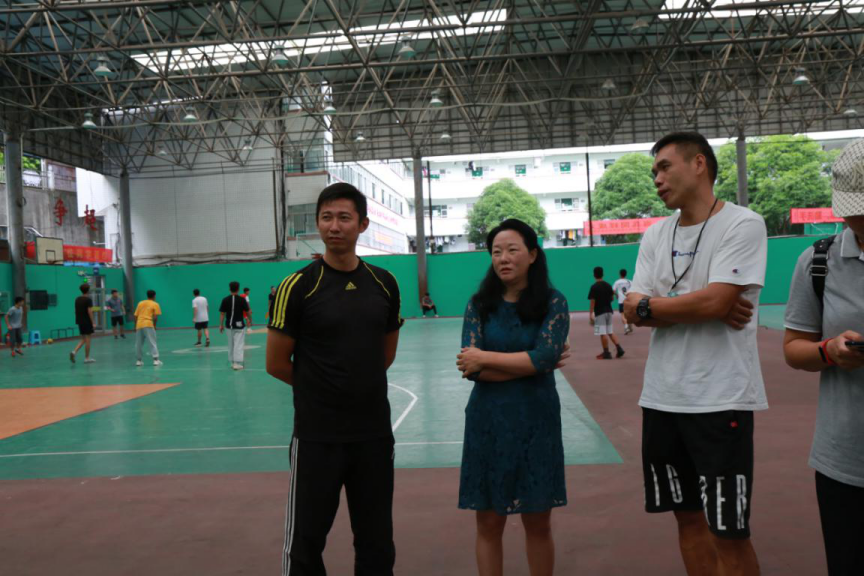 座谈会后,吴鸿丽校长一行到综合馆实地观摩正在进行上课的珍珠球课程,并与正在授课的王毅老师深入交谈。
