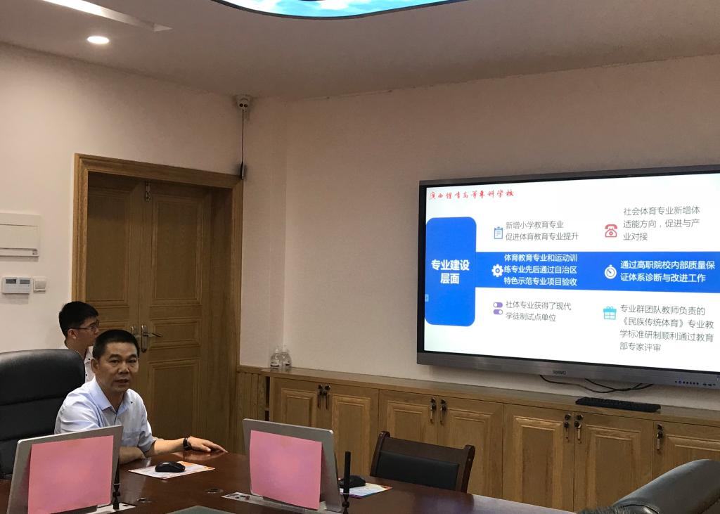9月17日上午,广西职业教育体育教育专业及专业群建设项目检查组专家一行4人到爱体育电子官方网站就申报获批在建的《广西职业教育体育教育专业及专业群建设研究基地》项目的推进情况进行了中期检查。该检查组专家由南宁师范大学职业技术教育学院院长王屹教授担任组长,广西职业技术学院组织部部长程艳、广西壮族自治区教育厅职业教育与成人教育处主任科员吴珂、中国-东盟职业教育研究中心副主任王忠昌作为专家组成员,主要通过听取汇报、查看材料、提出意见等方式对爱体育电子官方网站建设项目的落实情况进行了详细检查。覃杨彬副校长及项目组成员陪同检查并向检查组专家作了情况汇报。