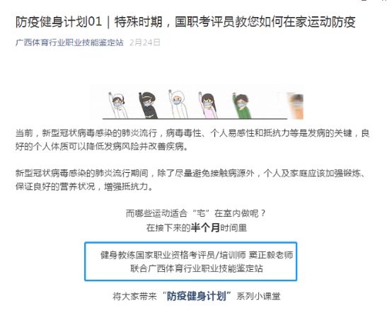 线上健身服务在广西体育行业职业技能鉴定站微信平台每日推送