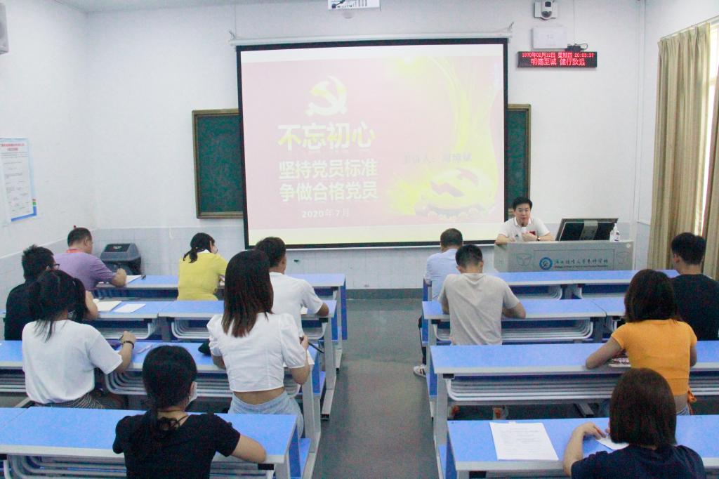 为深入切实加强教职工党员、学生党员对党章党规的理解、提升其政治意识、党性修养。7月2日下午周璋斌书记在运动科学与健康学院办公楼思政教室给运动科学与健康学院学生党支部全体党员上了题为《坚持党员标准,争做合格党员》的党课。