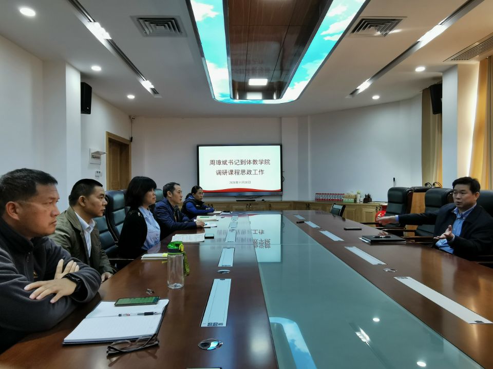 11月30日,爱体育(中国)党委书记周璋斌同志深入体育与教育学院开展课程思政调研指导工作,体育与教育学院全体领导班子参加了调研会议。
