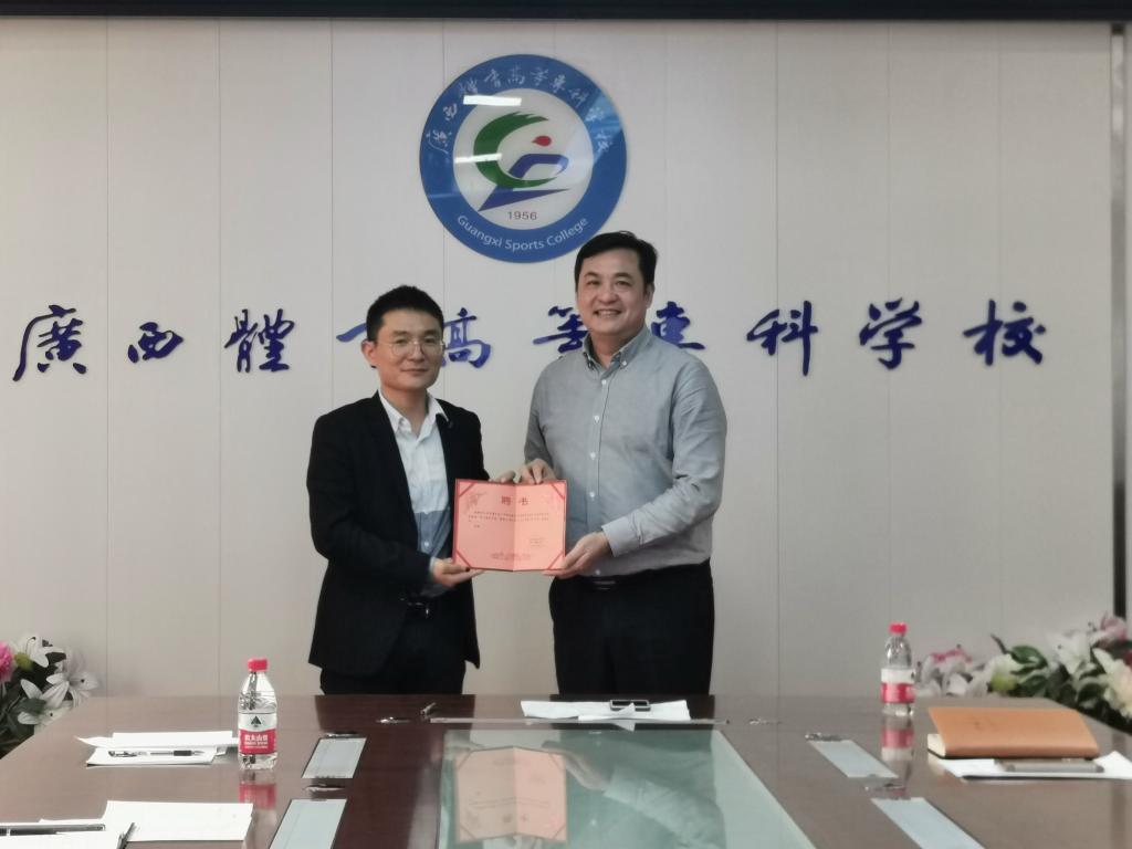 讲座结束后,邱团副校长为王忠昌博士颁发了聘书,聘其为体育教育专业及专业群建设研究基地项目指导专家。