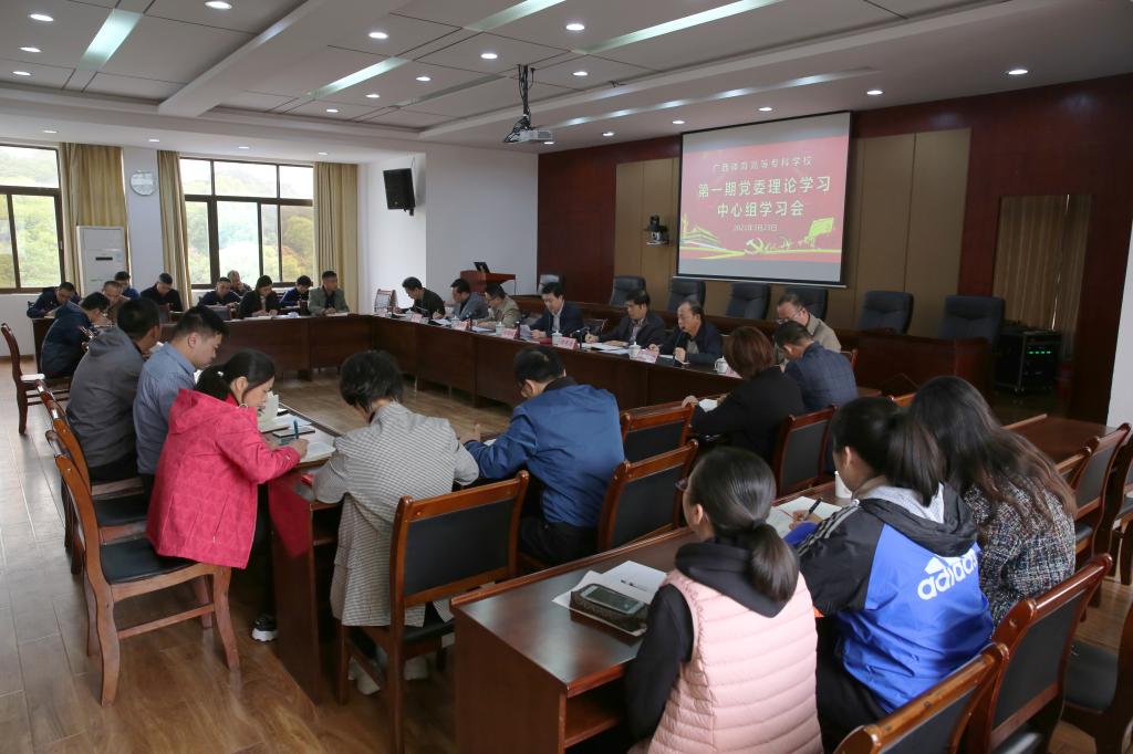 3月23日,爱体育电子官方网站召开党委理论学习中心组学习会,学习习近平总书记在全国脱贫攻坚总结表彰大会上的讲话、习近平总书记在中央党校(国家行政学院)中青年干部培训班开班式上的重要讲话精神、《深化新时代教育评价改革相关学习资料》、《中国共产党统一战线工作条例》精神、十九届中央纪委五次全会公报》和《中国共产党广西壮族自治区第十一届纪律检查委员会第七次全体会议公报》等有关内容。爱体育(中国)领导分别进行领学发言。