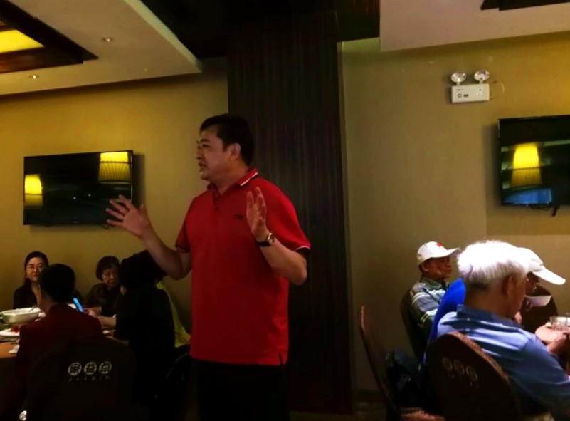 邱团副校长向退休教职工介绍爱体育(中国)发展情况