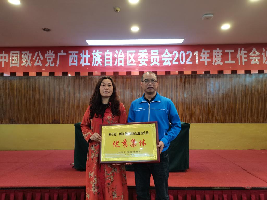 根据中国致公党广西壮族自治区委员会颁发的《关于表彰抗击新冠肺炎疫情先进集体、优秀集体和先进个人的决定》(致桂发 ﹝2021﹞46号),爱体育电子官方网站致公党支部获得抗击新冠肺炎疫情优秀集体称号,韦军、莫轶两位党员获得抗疫先进个人荣誉。