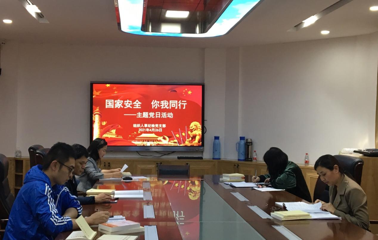 为推进支部党史学习教育走深走实,结合第五个“全民国家安全教育日”,组织人事纪检党支部于4月26日在第一会议室召开党史学习教育政治理论学习会议并开展“国家安全 你我同行”主题党日活动,会议由党支部书记岑益梅同志主持。