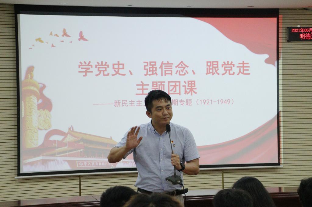 团课上,黎智达书记以新民主主义革命时期的党史为专题,讲述中国共产党从成立到中共一大至中共七大的召开直至中华人民共和国成立的全过程,给同学们上了一堂生动的党史学习教育主题团课。