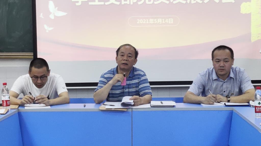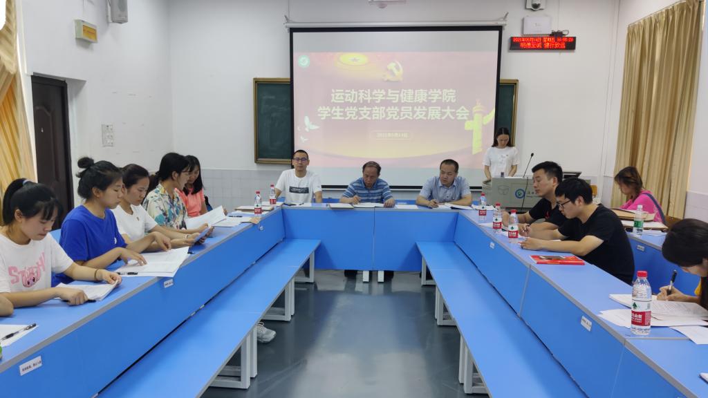 2021年5月14日下午,运动科学与健康学院学生党支部在学院思政教室召开党员发展大会,爱体育(中国)覃杨彬副校长、学院党总支李翔书记、朱晓东院长以入党介绍人身份参加会议。会议由学生党支部书记卢小婷主持。
