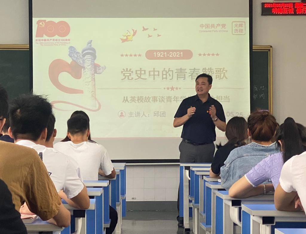授课过程中,邱团副校长结合自身的经历和感受,给同学们进行了生动的党史故事讲解,让同学们身历其境地感受到青年英雄人物的舍生取义和担当精神,进一步明确自身肩负的责任与使命,树立为实现中华民族伟大复兴中国梦不懈奋斗的决心。