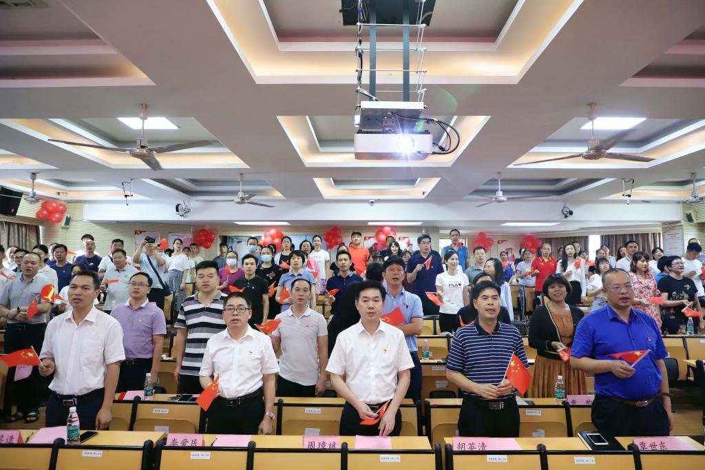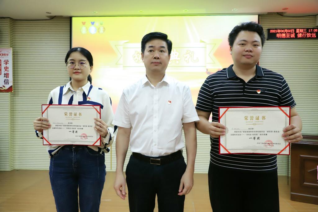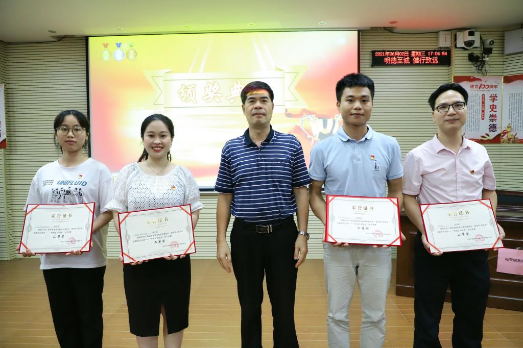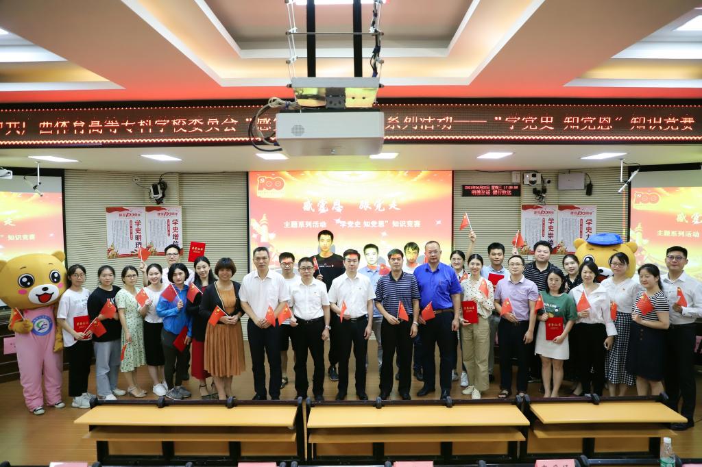 为庆祝中国共产党成立100周年,加深广大党员、师生对党的历史、党的知识、党的理论和路线方针的认识,做到学史明理、学史增信、学史崇德、学史力行,6月2日下午,爱体育电子官方网站在综合楼402报告厅举办“感党恩 跟党走”主题系列活动之“学党史 知党恩”知识竞赛。此次活动由爱体育(中国)党委主办,马克思主义学院党总支承办。爱体育(中国)党委书记周璋斌、校长胡英清、党委副书记李爱民、副校长覃世东、纪委书记罗黎造和全校党员在现场观看了比赛,比赛还通过图片形式进行直播。
