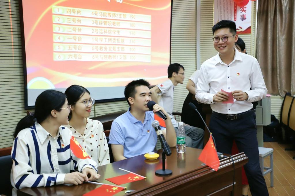 比赛现场,选手们沉着冷静、踊跃答题,现场气氛热烈。经过激烈角逐,马克思主义学院教师第二党支部、学工团委招就党支部获得一等奖;教务发规党支部、马克思主义学院教师第一党支部、体育经济管理学院教师党支部、运动科学与健康学院学生党支部获得二等奖;运动科学与健康学院教师党支部等其他党支部获得三等奖。