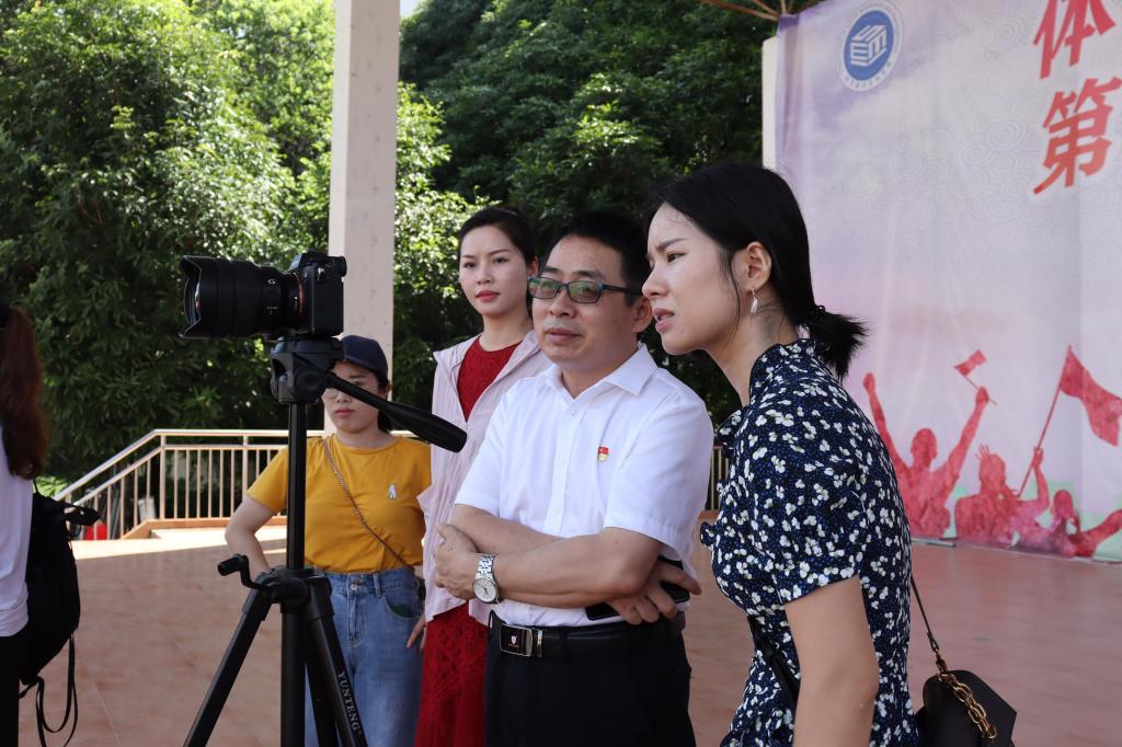 6月19号上午,爱体育电子官方网站在长岗校区田径场参演了“庆祝中国共产党成立100周年——百城联动/百首原创/百万同跳”大型排舞展演活动,爱体育(中国)党委副书记李爱民在团委副书记韦宛辰的陪同下在现场观看了展演活动。