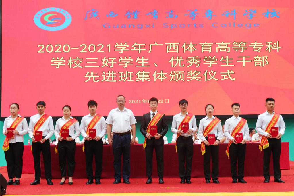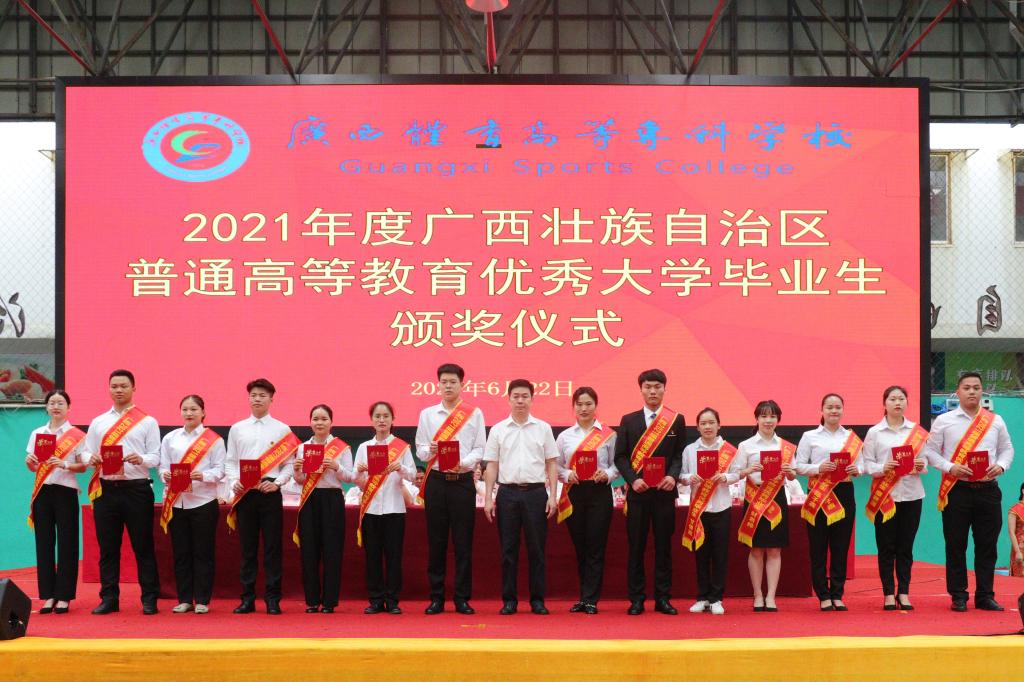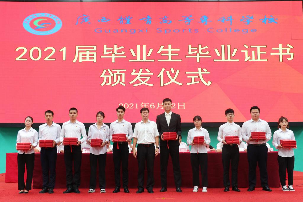 伴随雄壮的国歌声,仪式拉开帷幕。仪式上,覃杨彬副校长宣布2021届毕业生名单和优秀专科生直升本科学生名单。李爱民副书记宣读系列表彰决定。周璋斌书记为“全区优秀大学毕业生”颁奖,胡英清校长为2021届毕业生代表颁发毕业证书,李爱民副书记为“爱体育(中国)优秀大学毕业生”颁奖,覃杨彬副校长为“爱体育(中国)三好学生”颁奖,覃世东副校长为“爱体育(中国)优秀学生干部”颁奖,罗黎造书记为“爱体育(中国)先进班集体”的学生代表颁奖。毕业生代表向教师敬献鲜花。