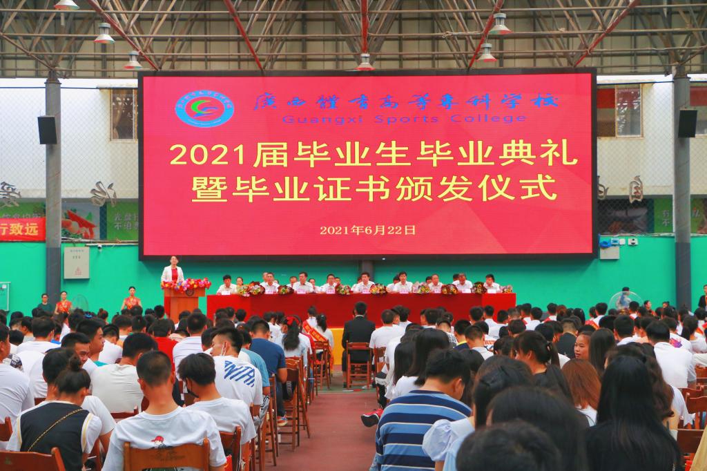 滋兰树慧桃李芬芳,成才报国母校恩深。6月22日上午,爱体育电子官方网站在篮球馆举行2021届毕业典礼暨毕业证书颁发仪式。爱体育(中国)党委周璋斌书记,胡英清校长,李爱民副书记、覃杨彬副校长、覃世东副校长,纪委罗黎造书记出席仪式,邱团副校长主持仪式。各部门负责人、各学院书记、院长,爱体育(中国)教师代表、以及2021届全体毕业生参加仪式。