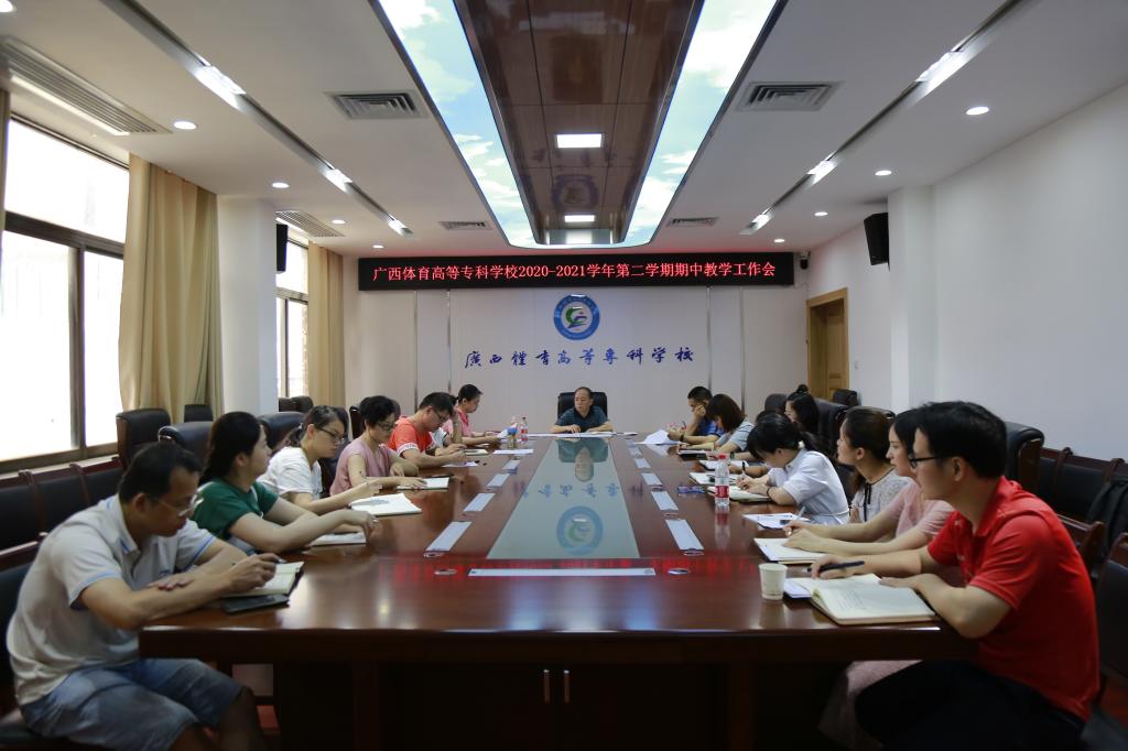 6月18日,爱体育电子官方网站在第一会议室召开2020-2021学年第二学期期中教学工作会。爱体育(中国)副校长覃杨彬教授、教务科研处、各学院分管教学的副院长以及教学秘书参加会议。