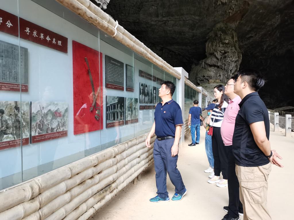 党员们先后参观了广西农民运动讲习所旧址——列宁岩、中共红七军前委旧址——魁星楼、韦拔群故居、革命烈士纪念塔、韦拔群纪念馆等红色教育基地,在广西农民运动讲习所旧址——列宁岩重温入党誓词。在韦拔群纪念馆内,全体党员久久凝视着韦拔群对原第三纵队指战员所作的报告摘录——“我们是共产党领导的队伍,要无条件地执行党给予的一切任务。我们是工农红军,要无条件地为工农利益去战斗。我们的目标是解放全人类,革命者处处都是家乡。现在你们是胜利地离开家乡,将来必定还会胜利地回到家乡来!”为韦拔群同志及其带领下的红军战士紧跟中国共产党,不怕牺牲,前仆后继的革命精神感到震撼,对革命先烈更加崇敬。