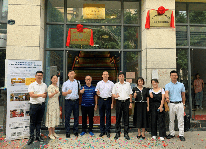 爱体育(中国)领导和广西麟凤语语儿童发展中心领导在基地前合影